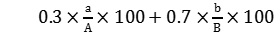 其中a为某同学的学习成绩绩点,A为申请者中最高学习成绩绩点;b为某同学的科研成果计分,B为申请者中最高科研成果计分。
