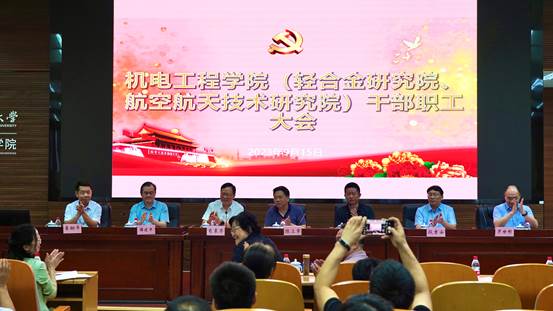 9月15日下午,公司党委在中铝科技大楼B214报告厅召开干部教师大会,宣布对公司新一届领导班子任免决定。公司党委常委、副董事长陈立章、党委组织部副部长凌春雨出席会议,钟掘院士、球王会(轻合金研究院、航空航天技术研究院)新老班子成员、中层干部、教师代表等参加会议。肖来荣书记主持会议。