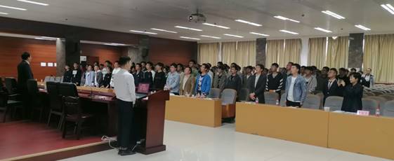开班仪式在庄严肃穆的国歌声中拉开序幕。首先班导师肖楚楚从课堂考勤、教学安排、成绩考核、培训班管理等方面对学员提出了要求。随后,邱昱桦同学代表全体学员们表态:在思想上严格要求自己,积极参加党史学习教育;以认真严肃的态度对待此次学习;在今后起到带头作用,努力实践,开拓进取。