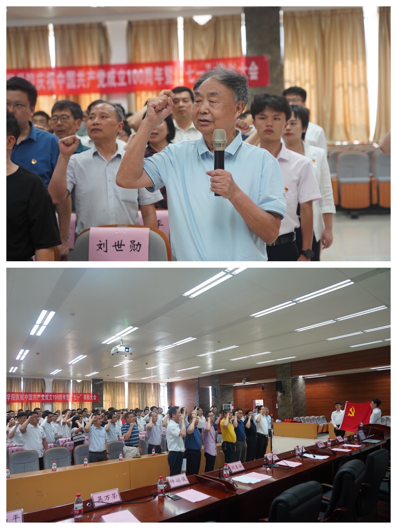 (光荣在党50年老党员刘世勋老师带领全体党员重温入党誓词)