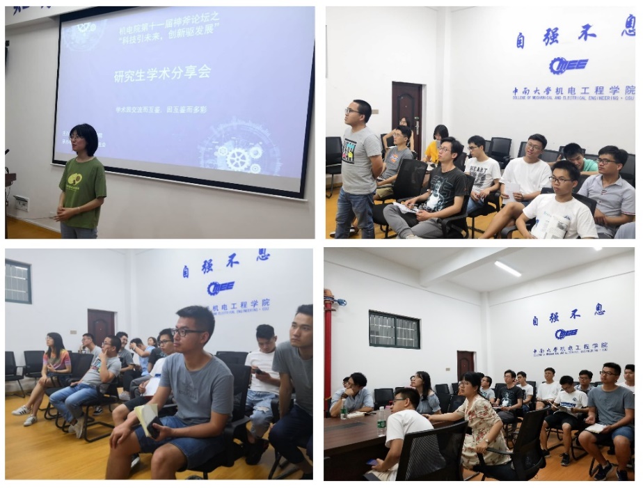 2019年6月5晚7点,机电院第十一届神斧论坛之“科技引未来,创新区发展”研究生学术分享会暨学术先锋论坛顺利在机电楼C座506顺利开展。本次论坛的主题为“学术因交流而互鉴,因互鉴而多彩”,论坛共吸引了来自湘雅医院、交通院、资安院、化工院、外国语公司等7个公司的11名学术分享人和各公司50余名前来聆听的员工。