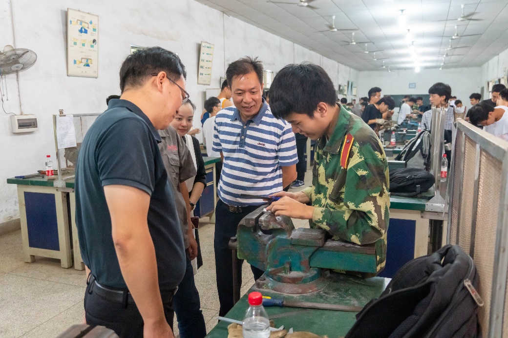 8月29日下午,公司党委书记肖来荣、副书记黄凯、副经理云忠、吴万荣到工程训练中心看望慰问金工实习的师生们,并到迎新现场检查指导迎新工作。