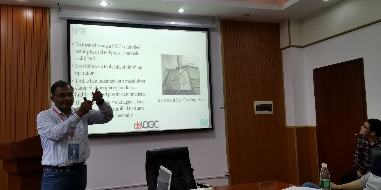 Zhilyeav教授做的学术报告题目为“Heterogeneous microstructure of FCC metals subjected to asymmetric rolling”,基于此,Zhilyeav教授还向大家介绍了EBSD工具研究超细晶金属材料的一些优点和局限性。Pesin教授做的学术报告题目为“Developing “natural” and heterogeneous composite aluminium alloys with a gradient nanostructure”,重点讲述了采用异步轧制开发梯度结构材料的一些研究进展。Tandon教授做的学术报告题目为“Incremental sheet forming at elevated temperature”,介绍了他们课题组在单点成形制备轻量化金属材料构件中的应用。这次学术报告得到了参会师生的高度评价和激烈讨论。