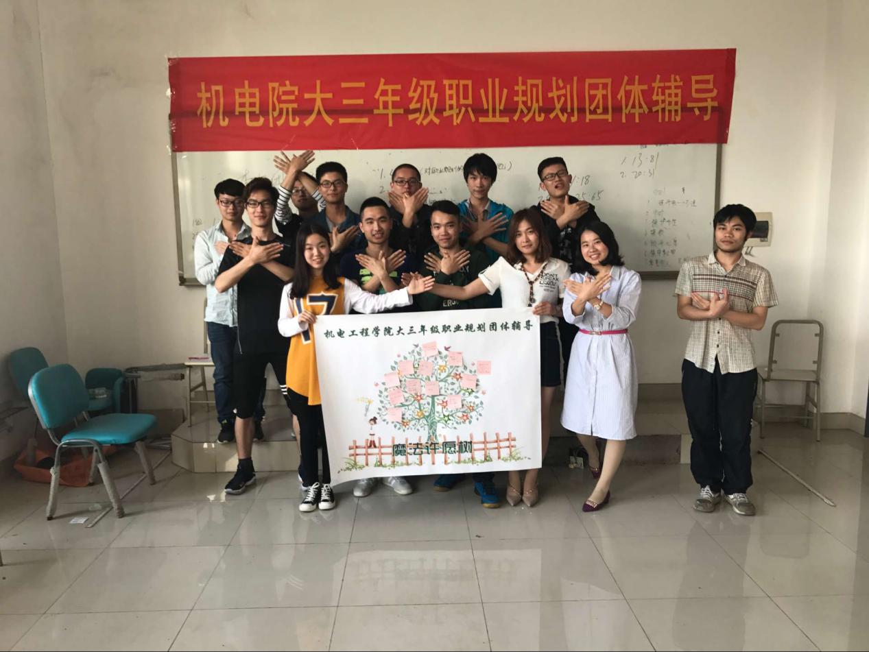公司大三年级开展了《我的未来我做主》连续团体心理辅导,4月23日在机电楼C505举行了最后两场主题五“一个好汉三个帮”和主题六“我的未来不是梦”的团体辅导,至此,大三年级职业规划六次团辅顺利完成! 在主题五“一个好汉三个帮”的团体辅导中,带团者何婷老师通过“缺胳膊少腿”、“信任之旅”、“同舟共济”和“同心鼓”等活动,使同学们增强了团队信任度,促使同学们提高团队合作意识,理解团队精神和合作的重要性。