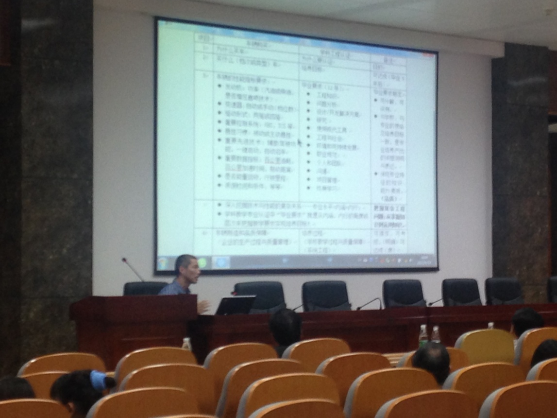 机电系李艳教授作为第一主讲人,讲授的内容是“工程教育专业认证总体情况”,她首先介绍了什么是工程教育专业认证,工程教育专业认证的背景及特点。然后从国际层面、国家层面、行业层面和公司层面介绍了为什么要做专业认证,进行专业认证的意义。最后介绍了专业认证主要做什么,阐述了开展专业认证的工作重点、认证标准及认证流程。 接下来车辆工程系欧阳鸿武教授基于“认证专业必须有明确、公开的毕业要求,毕业要求应能支撑培养目标的达成”的关系,以及“毕业要求要细化为可衡量、可评价、有逻辑性和专业特点的指标点(Performance Indicators)”的要求,对认证专业“毕业要求”的12条具体内容分层次进行了解读。其中,以购买汽车为例,将车辆档次类比与培养目标,汽车性能指标(如发动机功率,转矩,汽车的加速时间,制动距离,保修时间等)类比毕业要求,生动地解释了“毕业要求”的内在含义。 最后,郑煜教授向我们介绍了专业课程大纲的设计与实施,郑教授首先介绍了工程专业认证与课程体系的联系,落实毕业要求的专业课程大纲设计与实施,最后用汕头大学的实例进行具体实施过程的说明。 三位教授精彩务实的报告让全院老师进一步了解了工程教育专业认证工作对于球王会本科教学工作的重大意义,也更加坚定了教师们做好专业认证工作的决心。 球王会教务办