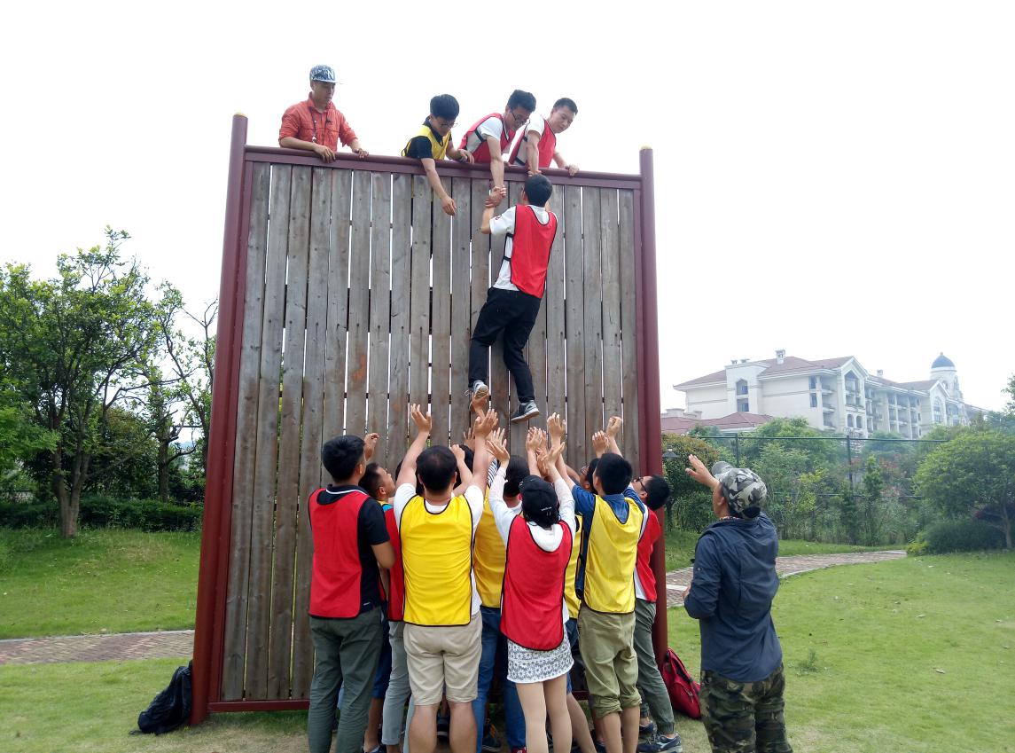 教练首先以“破冰游戏”开始,让团队成员之间相互握手、捏肩、捶背等,消除了坐车带来的倦意,帮助同学们突破自我心理防线。接下来大家一起玩“教练说”游戏,教练根据表现情况进行奖惩,通过一系列的欢快活动,营造了愉悦的团队氛围,建立了同学们之间相互信任的基础。紧接着在教练的指导下,全体人员分成两个小组,在队名队歌口号、高空跳跃、鼓动人心、游戏大比拼、急速60秒、毕业墙等活动上进行了比拼。其中鼓动人心则让团队成员强烈意识到,团队成功是个人成功的基础,个人成功必须建立在团队其他成员共同努力的基础之上;高空跳跃时每个成员必须克服恐惧,敢于挑战,相互鼓励;毕业墙则更能锻炼团队意志和培养团结协作能力。