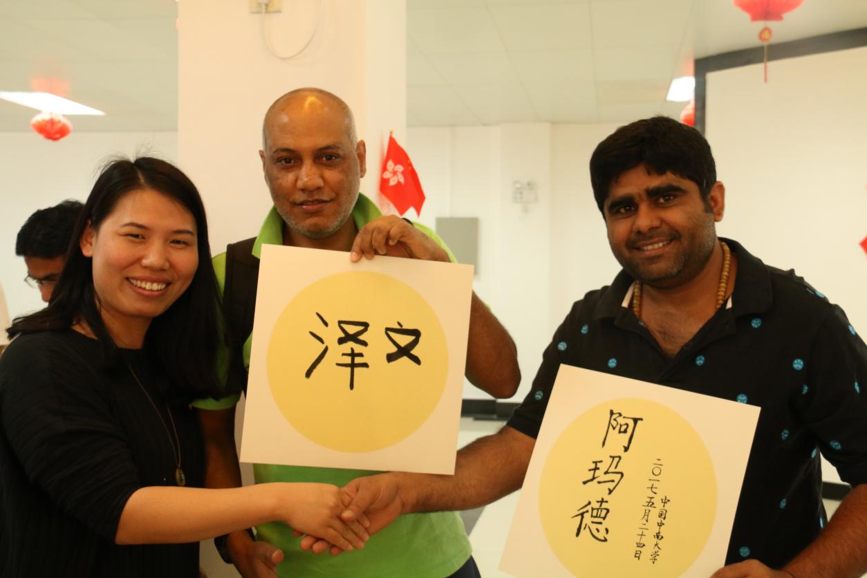 在活动中,到处都是中外员工们跃跃欲试的身影,他们合作包粽子、编绳子、拼龙舟;在香囊体验区闻药材,挑选自己喜欢的香囊颜色;在书法体验区我们的工作人员耐心教学,让职工们也能写出好看的方块字。期间,为了增强活动的趣味性,组织方安排了抽奖环节,更加激起了同学们的热情。