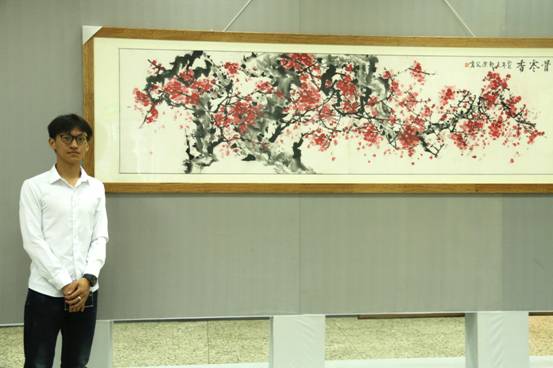 作为本次书画展主角的郑洁宏阳光爽朗,言行有礼,是一名充满了故事的男生。十岁从师学习书画,此后在升学压力下坚持自学,尤善画梅,作品曾在多个等级的书画展示竞赛中获奖并入选书画刊物。