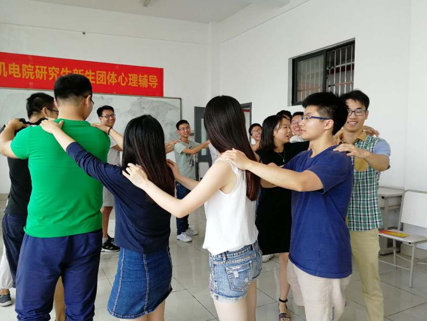 为了帮助2017级研究生新生尽快适应研究生生活,早日熟悉班级同学,促进同学们之间的交流,增强集体归属感,机电院研究生朋辈心理互助队积极组织了本次研究生团体心理辅导系列活动,并做好团辅老师们的助手。活动邀请到北大心理学硕士谭鑫老师;研究生辅导员、国家二级心理咨询师何婷老师;国家二级心理咨询师肖楚楚老师;国家三级心理咨询员江俊鑫老师;国家三级心理咨询员石越老师等五位老师。此次团体心理辅导系列活动于2017年9月20日至26日在机电楼C座505、506、508、B-C座大厅分别展开,以班级形式先后进行了7场,2017级240余名研究生参加了本次团体心理辅导活动。