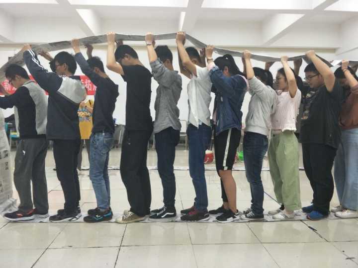 拓展活动以增强团队凝聚力、提高团队工作默契度和效率为中心,以趣味游戏的形式展开,同学们乐于其中,笑声连连。首先,肖老师用“抢板凳”和“五毛一块”两个小游戏让大家充分热身,很快,同学们纷纷进入状态,情绪高涨。
