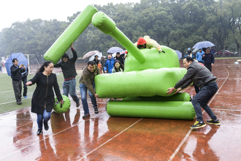 在接下来的“心心相印”团队夹球跑、车轮滚滚、铁甲战车的比赛过程中,公司教职工一直冒雨坚持,未参赛的教职工一直在旁边加油鼓劲。我们机电教职工用呐喊驱赶寒风,用热情消散细雨,最终获得团体第三名的好成绩。
