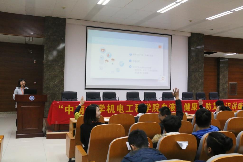 为普及献血及学业健康知识,加强员工防艾意识教育,11月25日上午,公司在机电楼B214报告厅举办了主题为《关于血液-你不知道的那些事》的健康知识讲座,邀请到湖南省血液中心(长沙血液中心)工作人员陈惠甦担任主讲人,300余名师生聆听了报告。