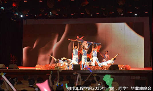 大学的一朝一夕,四年的举手投足,一千多个日夜的喘息驻足,都在今夜的舞台重温,短短的视屏,慌张的岁月,还没听腻舍友的牢骚,还没逛够宁静的校园小道,还没握够你的手,就又提起旅行箱开始流浪,无声的演绎却是动情的记忆,大家还沉静在回忆中不可自拔时,旋转腾飞的舞龙,刚劲有力的手臂,力与美的碰撞,给同学们带来视觉的盛宴,紧接着国防生劲爆动感的舞步,霸气十足的身形掀起一轮高潮。之后一首悠扬婉转的故乡山川勾起大家内心深处的灵魂呼唤,灯光骤变,嗨翻全场的爵士舞和乐队演奏让大家沉浸在音乐中不可自拔。然后搞笑别样的小品让笑容洋溢在每个观众的脸上,神秘梦幻的魔术紧紧吸引着大家的视线,韵味十足京剧,活泼可爱的舞蹈,最后一场朗诵毕业歌的T台秀,将今天的晚会带入尾声,自信,张扬,活力,青春在他们的脸上绽放,伴随着光彩笑容在那一瞬间的定格,2015年机电院毕业生晚会正式落下帷幕。