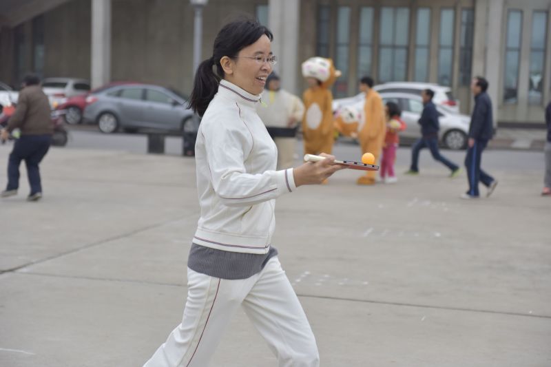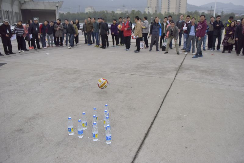 两人三足游戏在一开始便掀起了现场的紧张追逐气氛,机制所和训练中心以0.8秒的微弱差距摘得第一和第二。由于每项比赛只能有8到10名老师代表系所参赛,所以在正式比赛前,各系所内部队员间便展开了选拔赛,保龄球、乒乓球接力、背球接力,哪位老师能击倒更多的水瓶,哪位老师跑得快而且不掉球,配合好,便能代表小组出战。被给予厚望的老师们,在其他组员的加油声中,瞄准目标,奋力奔跑,受到大家不断的掌声和呐喊声的鼓励。