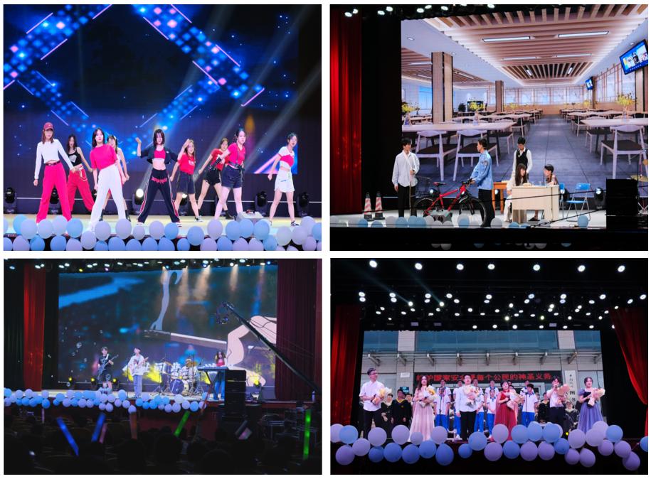 四人乐队演奏《火车驶向云外,梦安魂于九霄》节目拉开了“跃入人海,奔涌向前”篇章的帷幕。韩舞《Tomboy》和合唱《劝君更尽一杯酒》瞬间引爆全场,欢呼鼓舞不断。最后,辅导员肖楚楚、高佩茹、黄奎和微电子1802班的同学为大家带来了大合唱《入海》。