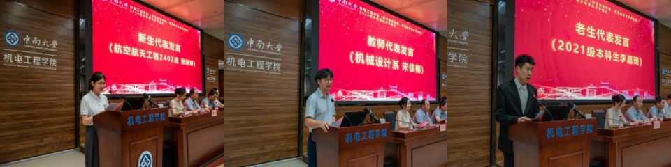 老生代表李嘉琦鼓励新生保持学习、提升自我,用蓬勃的面貌迎接新的人生篇章;新生代表张婷婷号召新生们做有理想、敢担当、能吃苦、肯奋斗的新时代青年;教师代表宋佳楠希望新生主动学习、加强沟通、锻炼身心,勇敢迎接每一次挑战。