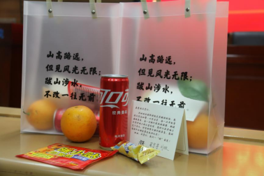 最后,辅导员周芳、宋宁宇和刘璇老师为考研学子送上加油大礼包。礼包内物资丰富,蕴意十足:有圆润饱满的脐橙,寓意“心想事成,马到成功”;有口味多样的棒棒糖,寓意“金榜题名”;还有暖宝宝和可乐,为考研学子补充能量;此外,辅导员老师们为219名考研学子准备了写满美好祝福的贺卡,祝愿机电学子成功“上岸”,一“研”为定。