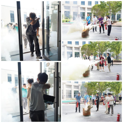 理论培训后,全体人员在报告厅外进行火情疏散演练。随着模拟烟雾弹触发,师生们迅速捂住口鼻,弯腰低姿沿安全通道有序撤离至指定集合点。随后,尹教官现场演示灭火器“提、拔、握、压”四步操作法,并指导师生代表实操体验油盆灭火,纠正常见错误动作。