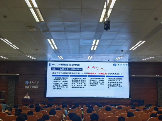 讲座立足"八项规定改变中国""扣好廉洁自律扣子""努力践行使命担当"三个维度展开。李书记首先用祥实的数据和典型案例,展示了中央八项规定实施以来党风政风的显著变化。随后,她结合职场实际,深入浅出地讲解了廉洁从业的基本要求,特别提醒毕业生要警惕"由风及腐"的风险,走好职场第一步。