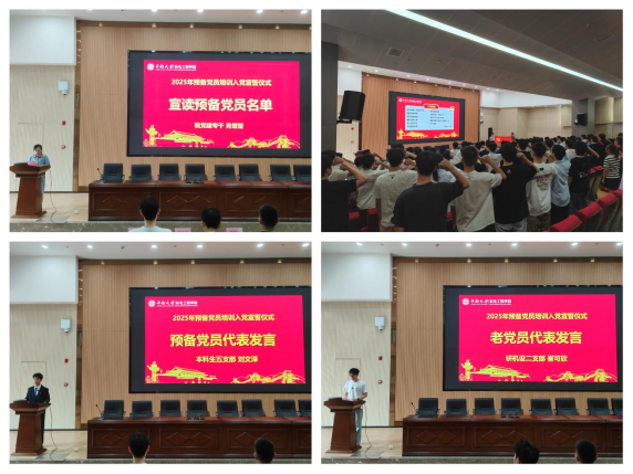 预备党员代表刘文泽郑重承诺,将牢记党员身份,永葆初心本色,以青春之我勇担时代使命。他倡议全体新党员用实干彰显共产党员的先锋本色,让青春在奉献中绽放绚丽光彩。老党员代表崔可欣勉励新党员要树立家国情怀,勇做时代接力者,传承红色基因。他强调要坚持知行合一,把"争做优秀共产党员"作为毕生追求,在持续修炼与实践中淬炼党性修养。