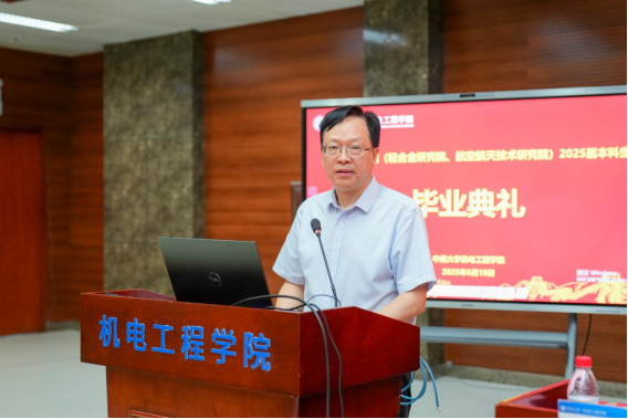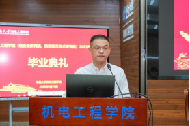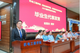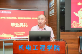 下午两点三十分,研究生毕业典礼正式开始。全体师生齐唱国歌后,研究生毕业生代表赵雪龙同学发言,他回顾了三年求学时光,感恩母校培养与恩师教诲,号召同学们以赤子之心投身科研、制造一线或基层,秉承“知行合一 经世致用”的校训担当时代责任。教师代表周元生教授结合自身多年求学与科研道路上的实践感悟,为毕业生提出三点建议:一是以好心态面对人生的不如意;二是学会做长远规划,选择自己喜欢且擅长做的事,日积月累,厚积薄发;三是要将道德修养作为立身之本,时刻注重品德锤炼,以高尚的品格为人生航程保驾护航。