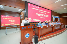全体师生齐唱国歌后,本科毕业生代表李嘉琦发言,他代表全体毕业生感恩师长的智慧引航,祝愿同学们永葆机电人“不驰空想、务实笃行”的品格,在制造强国的壮阔原野上开拓新程。教师代表林赉贶祝贺毕业生淬炼成长、圆满毕业。他还深情勉励毕业学子胸怀星辰大海之志,躬身知行合一之实,融通知行精技之长,做自信担当的中南机电人!