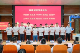易幼平副经理宣读省级、校级优秀毕业生名单,肖来荣书记为10名湖南省优秀毕业生颁发荣誉证书。