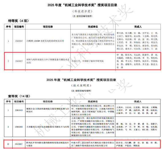 近日,2025年度“机械工业科学技术奖”获奖名单正式揭晓,公司荣获1项特等奖、1项一等奖。