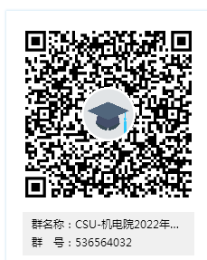 考生复试时间:3月26日—27日。具体安排将通过电话或QQ群(CSU-机电院2022年硕士复试群:536564032)进行通知,请及时加群并关注。