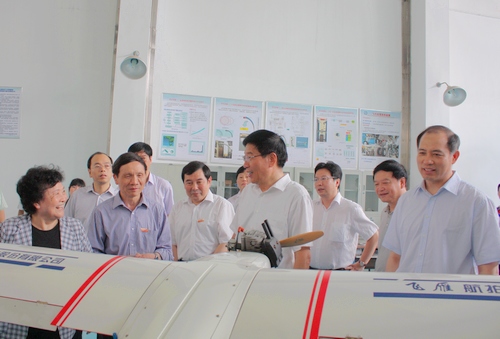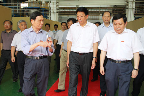 省长徐守盛来校调研 表示全力支持公司创新发展发布时间:2011-08-25 浏览次数: 7月21日下午,省委副书记、省长徐守盛来到公司调研,考察了高速列车研究中心、高性能复杂制造国家重点实验室和粉末冶金研究院,并与公司院士和领导进行座谈,就湖南博云航空工业园基地、c919大飞机实验基地及刹车系统工程技术中心的建设等问题现场办公。徐守盛要求省直相关部门和长沙市全力支持公司发展创新,并寄语公司立足学科和技术优势,着眼未来,抢抓机遇,继续攀登科研高峰,为建设“四化两型”和富民强省再创佳绩、再立新功。 省委常委、副省长郭开朗,省委常委、长株潭试验区工委书记陈肇雄,及湖南省、长沙市有关部门负责人参加调研。 当日下午,在公司党委书记高文兵、董事长黄伯云陪同下,徐守盛一行首先来到位于铁道校区的高速列车研究中心。在田红旗教授的介绍下,徐守盛认真观看了高速列车气动性能动模型试验,当看到两架列车模型像箭一样在眼前疾驰而过时,徐守盛脱口称赞:太厉害了!他希望研究中心不断攀登科研高峰,勇克技术难题,突破研究瓶颈,为国家高速列车发展做出新的更大贡献。