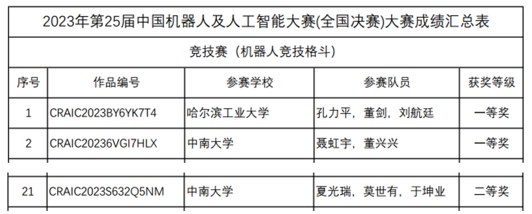 全国第二!机电工程示范中心学子斩获第25届中国机器人及人工智能大赛国奖发布时间:2023-06-30 浏览次数: 第25届中国机器人及人工智能大赛于2023年6月15日在海南海口举行,中心员工聂虹宇、董兴兴在机器人格斗赛项的比赛中斩获全国一等奖(亚军),夏光瑞、莫世有、于坤业获全国二等奖的好成绩。 中国机器人及人工智能大赛是一项历史悠久、影响广泛的全国性 学科竞赛。作为中国人工智能学会最早主办的竞赛之一,大赛已为我国培养了一大批能动手、敢创新、可协同的复合型人才,目前已被列入中国高等教育学会发布的《2022年全国普通高校老员工竞赛分析报告》,也是球王会官网学科竞赛重点支持项目。 全国共有25个高校100余支队伍入围国赛,其中,公司学子作品“长虹”号和“冰魄”号代表公司参加了比赛。 “长虹”号和“冰魄”号 经过两轮残酷的淘汰赛,由聂虹宇、董兴兴组成的“虹猫队”顺利挺进国赛决赛,对战来自哈工大的“CR”战队并获得了全国亚军。 队员们在签名墙前合影 此次大赛是全国规模的比赛,公司学子一路披荆斩棘,最终斩获全国一等奖(亚军)和全国二等奖的优秀成绩,彰显了机电学子的实力与魄力,为公司、公司争得了荣誉。 一审袁晒,二审张悦,三审吴万荣 |
