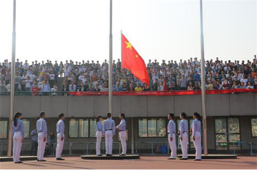 入场完毕后,全体起立升国旗唱国歌,国歌声飘荡,悠扬振人心。紧接着胡岳华董事长致辞开幕式,他对运动员及裁判员进行了亲切的慰问,对运动员提出了“更快更高更强”的期望,祝参赛选手能够取得优异的成绩,同时预祝运动会能够圆满结束。由周璐同学李卫华老师分别代表全体运动员以及全体裁判员宣誓。希望每个参与者都应该认真遵守各项规定,赛出水平,赛出风度。然后由黄健柏董事长宣布开幕式结束,大型文体节目 《青春中南》开始。