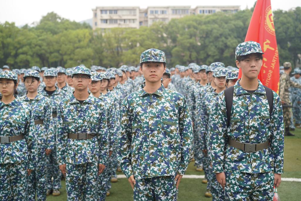 《人民日报》有言:“训少年之体魄,强中华之脊梁”军训是对意志的磨炼和对耐力的考验,唯有健壮的体格、坚强的意志伴随,我们才能不断地完善自我,在学习之路上愈行愈远。朝阳初升,军训也从此时渐渐拉开序幕,身着迷彩训练服的我们集结在南校操场,挺立昂首的身姿、充满朝气的面庞、响亮整齐的踏步声,一切都是开启这段新征程的最好见证。学站军姿便是第一个考验。“挺胸抬头、手掌紧贴裤缝,脚跟并拢脚尖张开约60度…”教官...
