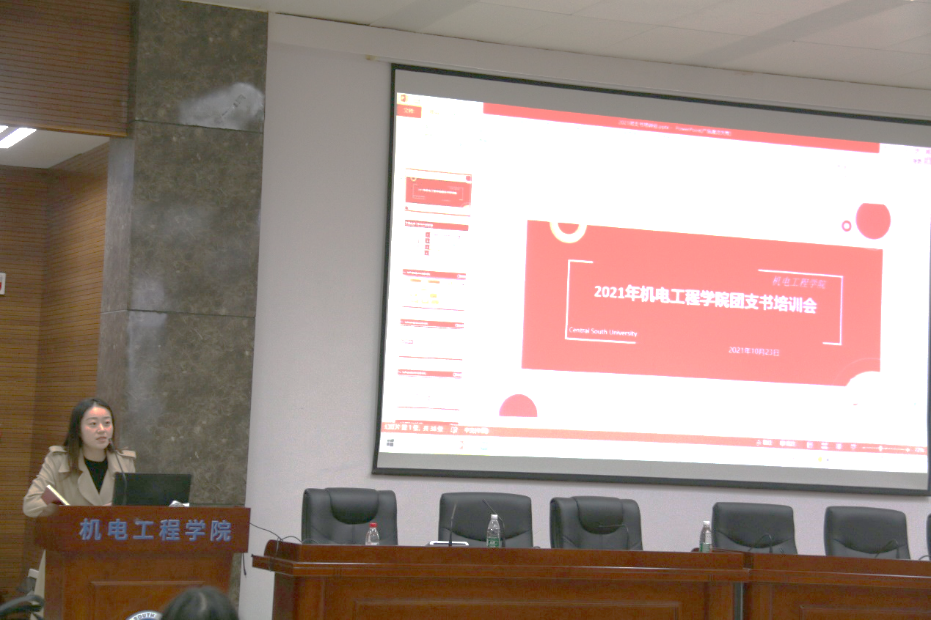 10月23日上午,公司团支书培训会在机电楼B214报告厅举行。会议由公司团委书记章佳琪、团委组织部部长梁盈盈主持,全体团支书参与此次培训会。