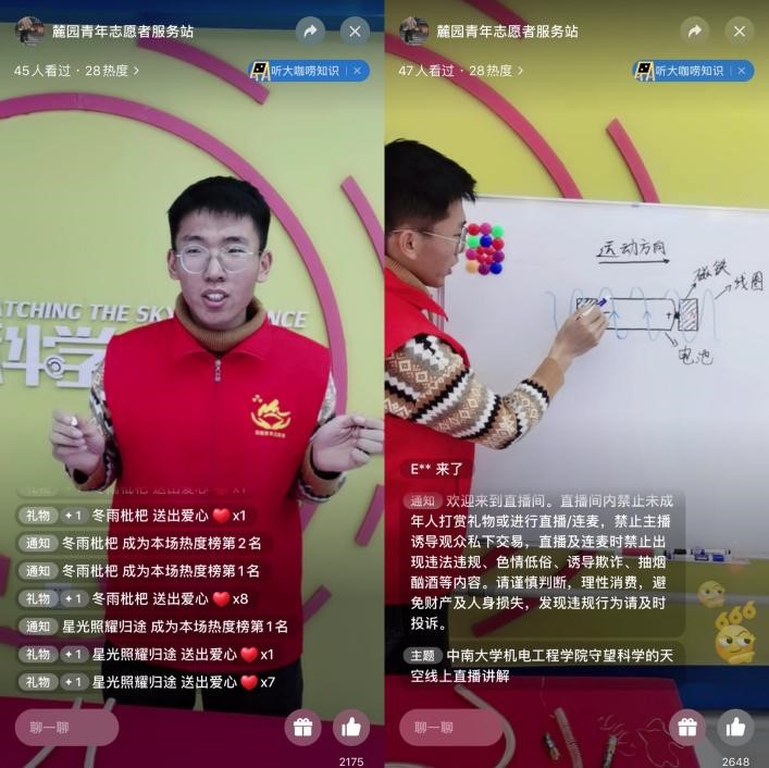 12月19日下午,公司麓园青年志愿者服务站在兰亭社区校外基地举行了“守望科学的天空”科普直播课。