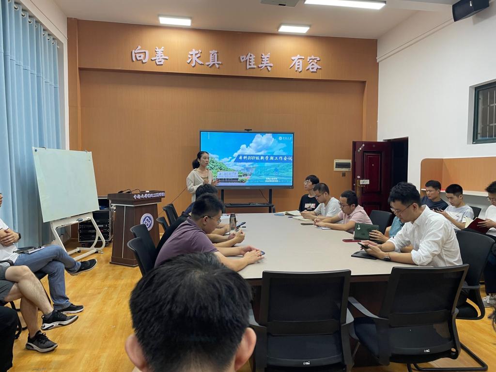 8月30日晚7点,公司本科2021级新学期工作会议在机电楼c202召开,会议由辅导员周芳、宋宁宇主持,全体班导师、副班导、班长参加会议。