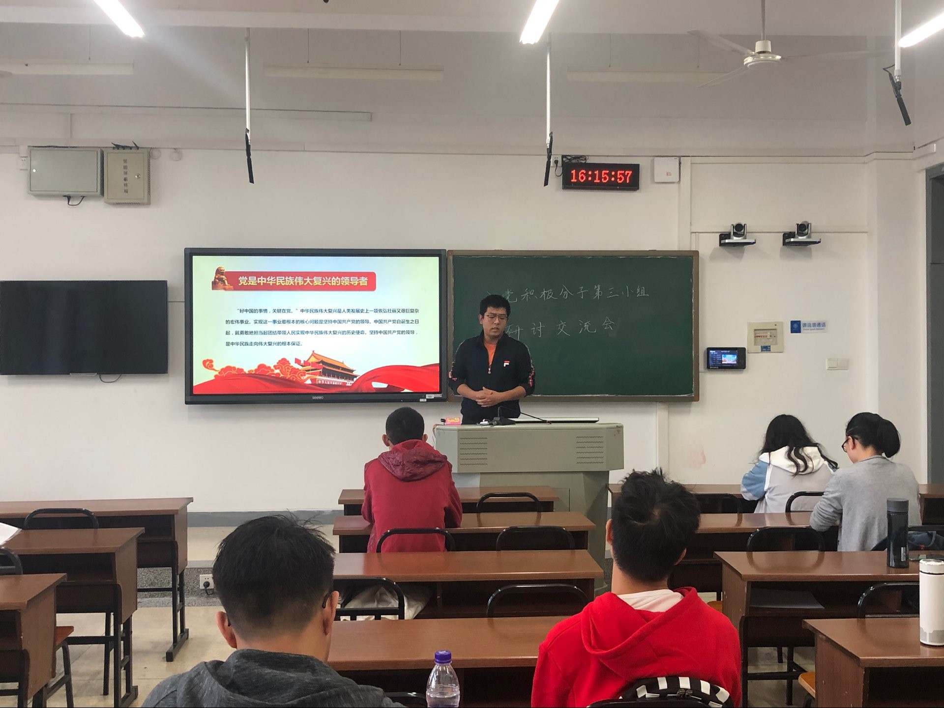为进一步锻炼坚强党性,明晰入党动机,交流学习习近平总书记在“不忘初心,牢记使命”主题教育工作会议上的重要讲话精神。在2019年10月30日下午16:00,入党积极分子第三组于教学楼A座222教室开展研讨交流学习,全体成员积极参与,踊跃表达自己的观点。