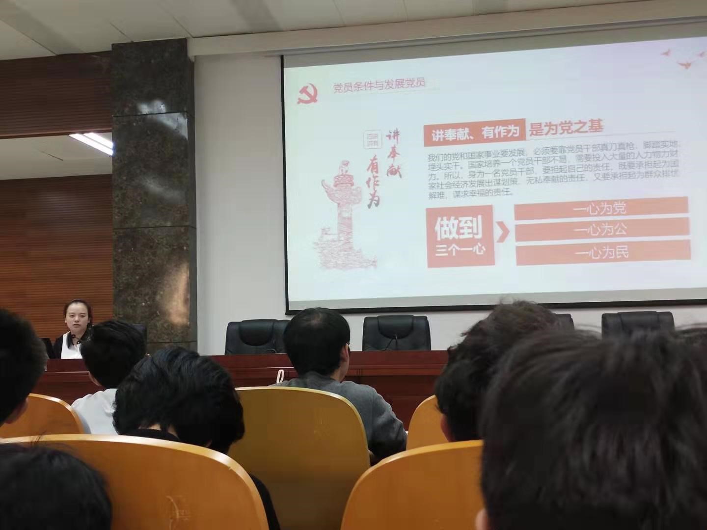 依据球王会官网党委党校入党积极分子培训教学安排,鼓励积极分子深入了解党的性质、宗旨和指导思想,掌握党员条件和发展党员相关知识。2019年10月19日下午两点于机电楼B214报告厅,全体入党积极分子参与本次党课,党课由谭希培老师和肖楚楚老师主讲。