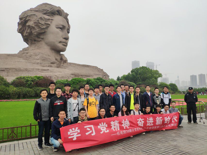 4月 27日上午,机电院第38 期分党校积极分子培训班第7、8小组全体成员在长沙橘子洲进行了主题为“学习党精神,奋进新时代”的参观学习活动。旨在加强学员理想信念教育,锻炼党性,激发爱国爱党热情。