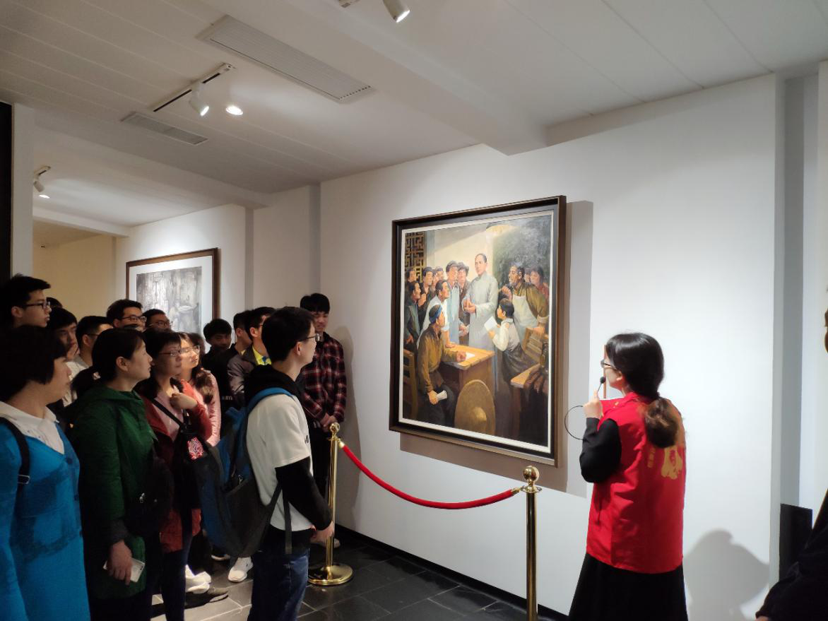 之后,在解说员的带领下,学员们参观了青年毛泽东艺术雕像展馆。进入展馆之后,首先映入眼帘的是毛主席于1950年12月为湖南第一师范公司的题词“要做人民的先生,先做人民的员工”,书法气势磅礴、展现了伟人的胸怀,体现了人民在毛泽东心中的崇高地位。而徐特立题写的“实事求是,不要自以为是” 则是振聋发聩,予人启迪。展馆通过《同学少年》、《上下求索》、《伉俪情深》与《浪遏飞舟》四个篇章,系统展现了毛泽东离开故乡韶山来长沙求学,对“改造中国与世界”的艰难探索,与杨开慧的相遇相知,而后从领导工农运动到发动秋收起义的革命历程,全景展现毛泽东等老一辈无产阶级革命家波澜壮阔的革命生涯。
