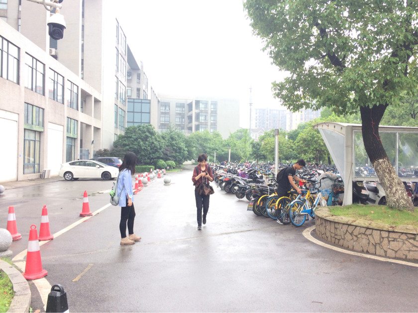 天空中飘荡着的小雨也阻止不了我们的热情,我们几个人分成两个小组,分别守住两个通道,时不时有前来停车的同学,他们或因就近原则、或因周围已没了空位,想随便停车。在我们的耐心劝导下,他们意识到了自己的错误,纷纷将车子跟着引导人员重新停到稍里面的空地上。
