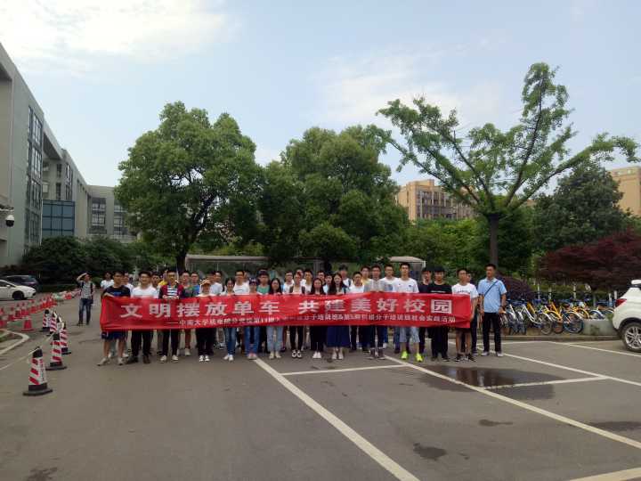 2018年5月6日星期日上午,迎着清晨明媚的阳光,机电院分党校第11期入党积极分子培训班&第5期发展对象培训班的同学们来到机电楼,开展了主题为“文明摆放单车,共建美好校园”的实践活动,将机电楼附近的共享单车进行了规整摆放。
