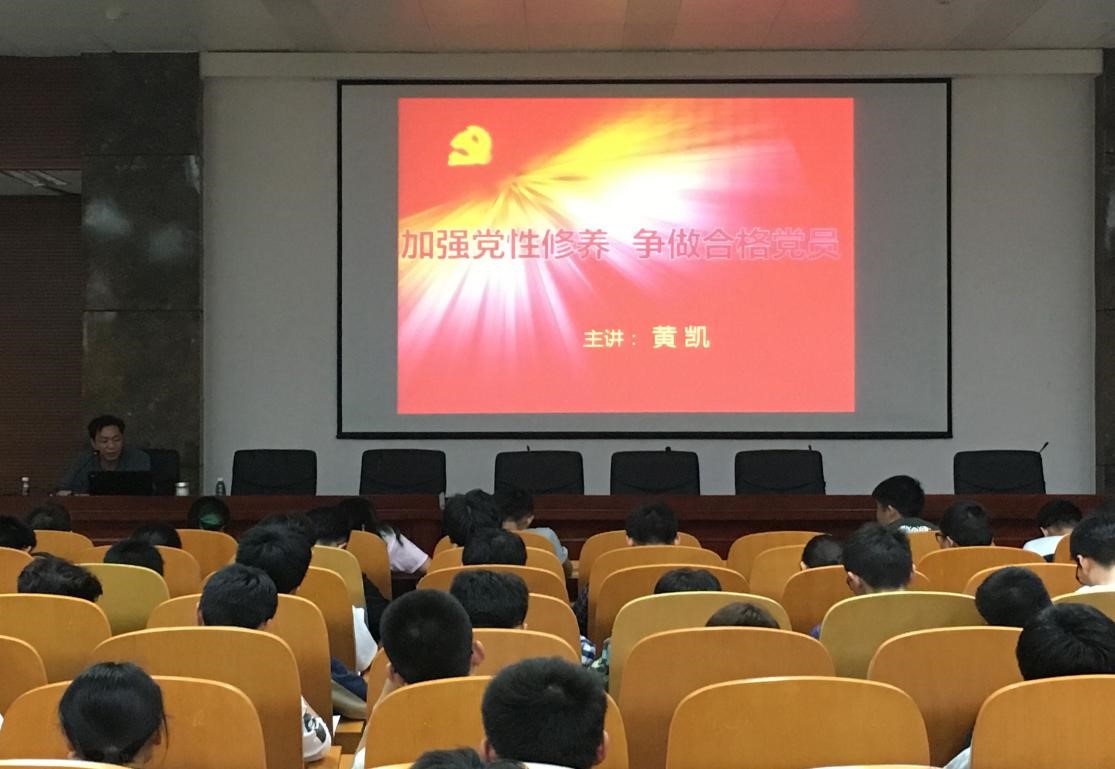 典礼结束后,黄凯书记给学员们上了第一节党课《加强党性修养,争做合格党员》,为学员们介绍了什么是党性:党性是党的性质的本质体现,党性是由党的性质决定的,是政党固有的本质属性。最后,黄书记还对学员们提出了以下几点殷切希望:一、学员们能够自己在课后深入了解党性。二、在今后做到“不忘初心,牢记使命”。三、加强自我党性修养,争做一名合格的党员。