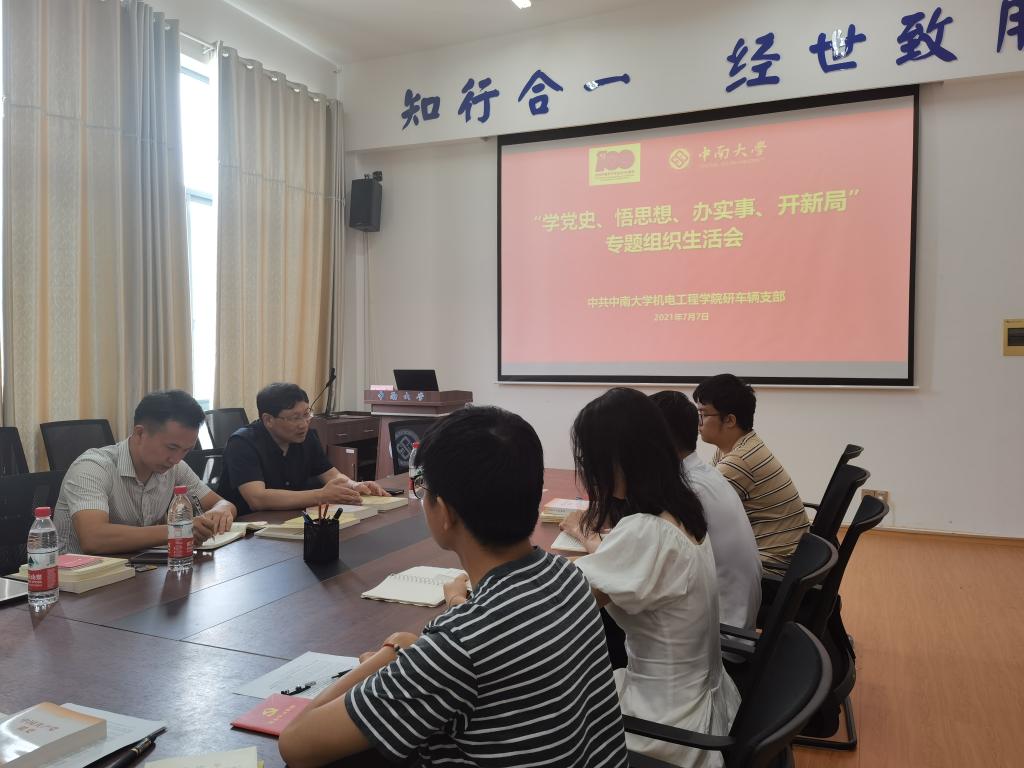 2021年07月07日14时,研车辆工程支部在新校区机电楼C506举行了“学党史、悟思想、办实事、开新局”专题组织生活会。本次会议很荣幸的邀请到公司党委委员段吉安经理来参加此会议。会议主要内容有:1、党员逐一发言,开展学习交流和党性分析。2、党支部书代表党支部委员会向党员报告半年来党支部工作情况,通报党支部委员会检视问题情况。