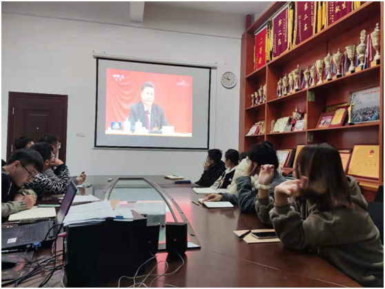 第二项,全体党员与积极分子共同学习十九届六中全会精神,通过以视频学习的方式进行共同学习,在视频观看完之后,支部书记童俊杰进行简单讲解,并要求预备党员和积极分子就以这次的学习进行撰写思想汇报。