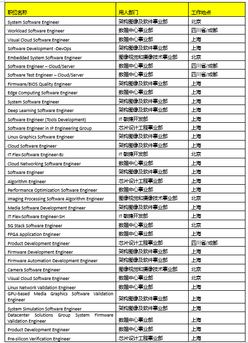 英特尔研发补招职位一览:
