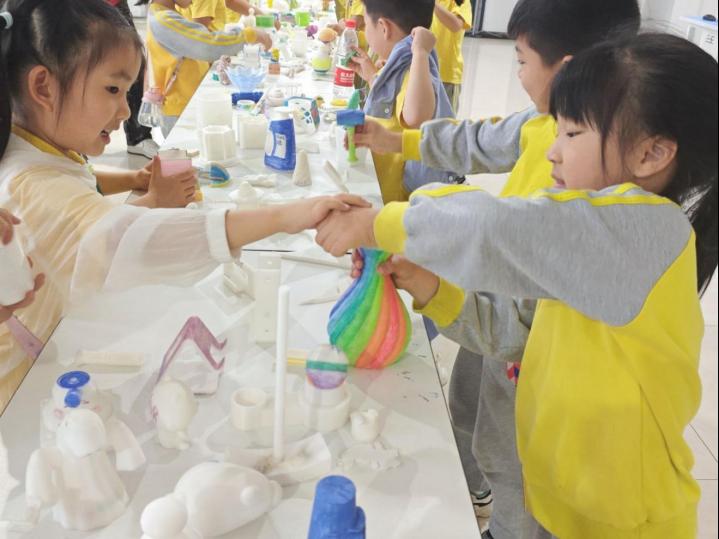 紧接着,志愿者们带领小朋友们前往3D打印教室进行学习。志愿者甘博文向小朋友们详细介绍了3D打印技术的基本概念、发展沿革及其广泛应用。小朋友们聚精会神地听讲,积极地回答问题,深入了解了这一向先进的技术。随后,小朋友们参观了许多优秀的成品。活动接近尾声,志愿者们将用3D打印技术制作的小恐龙赠送给小朋友们作为留念。