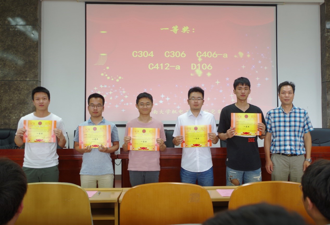 为进一步倡导文明之风,营造干净舒适、安全和谐的科研环境,提高研究生党员领学促学意识,更好发挥党员先锋模范作用,机电院眼激素党支部和研究生会联合发起了开展第三届“亮身份,见行动,当先锋——我是党员我先行·科研环境换新颜”之研究生研究室清洁大比拼活动。为表彰先进,树立典型,公司于2019年6与11日,在机电楼B座214报告厅举办了颁奖典礼。公司党委黄凯副书记、公司党组织干事何建仁、院学工办副主任肖楚楚及研究生辅导员何婷作为颁奖嘉宾出席了本次颁奖仪式。参加本次活动的还有各研究室负责人及全体研究生毕业班党员。颁奖典礼由研究生会主席杨帆主持。
