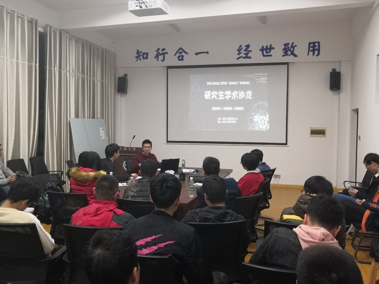报告还未开始,报告厅就已经坐满了好奇的同学们。在简单的介绍后,16级硕士张浩亮关于《芯片及其封装的发展》的报告拉开了本次学术沙龙的序幕,以大家日常使用的电脑为切入点,用生动的语言介绍了芯片封装发展的历史及现状。接下来16级硕士杨翰杰《浅谈中国“芯”》的报告对不久前的中兴事件进行了分析,展望了未来中国芯的前景。16级博士杨友良关于《大型复杂构件蠕变时效成形技术研究》的报告将本次学术沙龙推向了高潮,为同学们展示了一名博士研究生的日常科研实验活动,以及相关的学术经验。