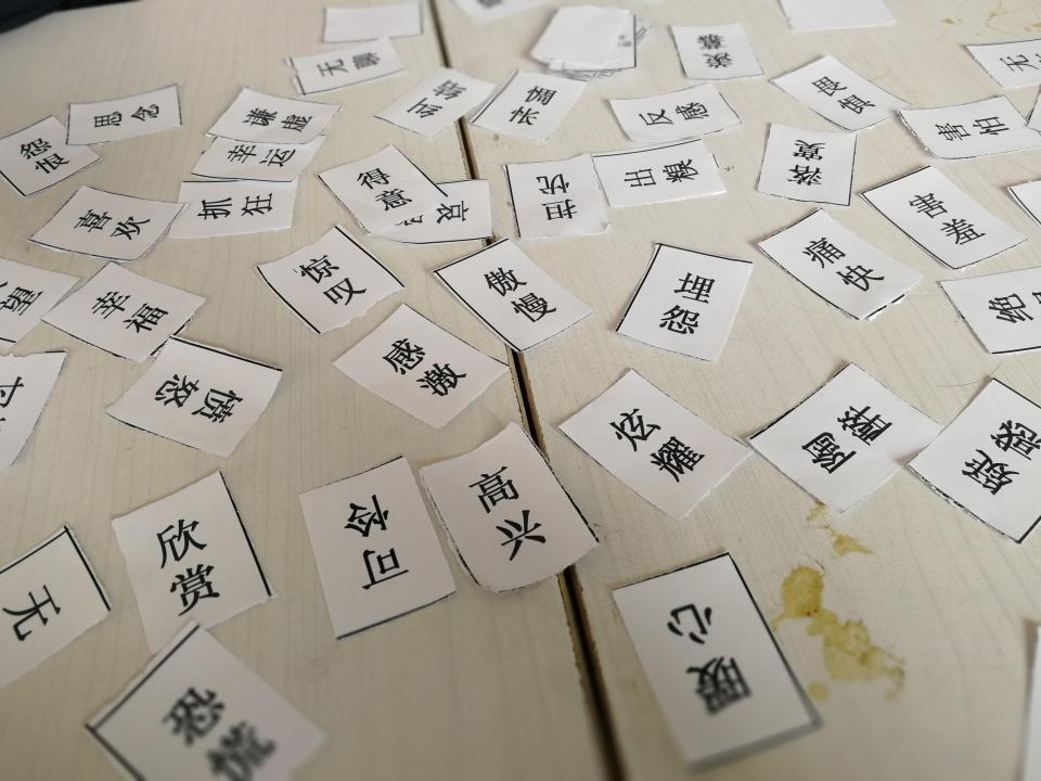 本次活动以小组为单位进行,全体成员被分为六到七个小组,每组5到6人。活动开始,每个小组选出一个组长和一个案主。这时,案主讲述一个发生在自己身上的真实故事,其他成员会从桌上的情绪卡中选择若干张写有情绪的卡片,来形容案主在讲述故事中的情感,并交由案主,案主从卡片中选择三张最能形容自己情感的卡片。